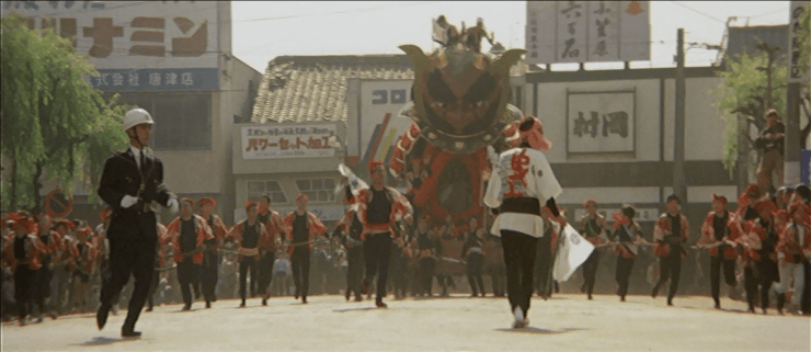 先導する警官がリアルで、看板や建物も昭和40年代の雰囲気が出ている。